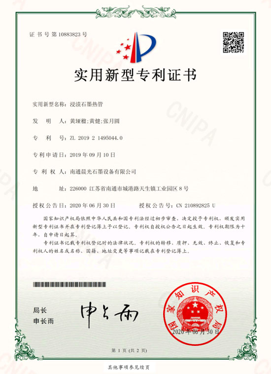 實用新型專利 :浸漬石墨熱管 專利號:ZL 2019 2 1495044.0